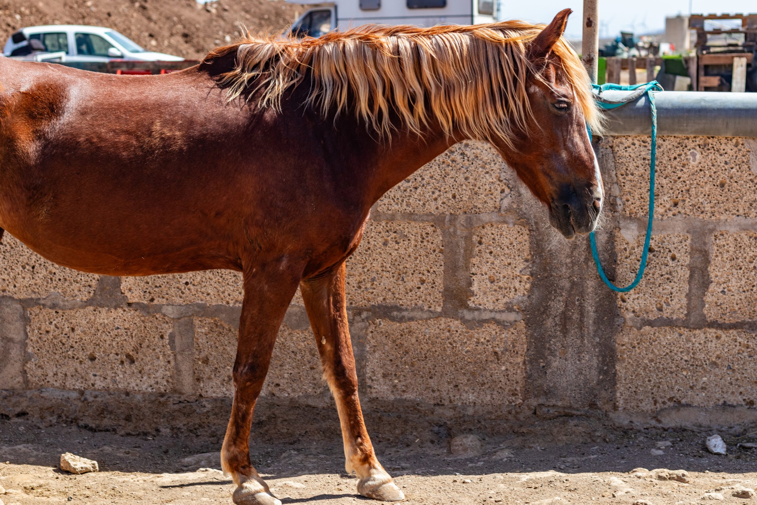 She can’t go on the same walks as some of the other horses, because she can’t walk at the same speed. But we take her on special slow walks. We carefully stay on top of her hoof care. Every once in a while a specialist comes to give her bodywork massages, to release tension that builds up because of her leg deformations. She is doing really well, enjoying a relaxed and comfortable life at our finca.
