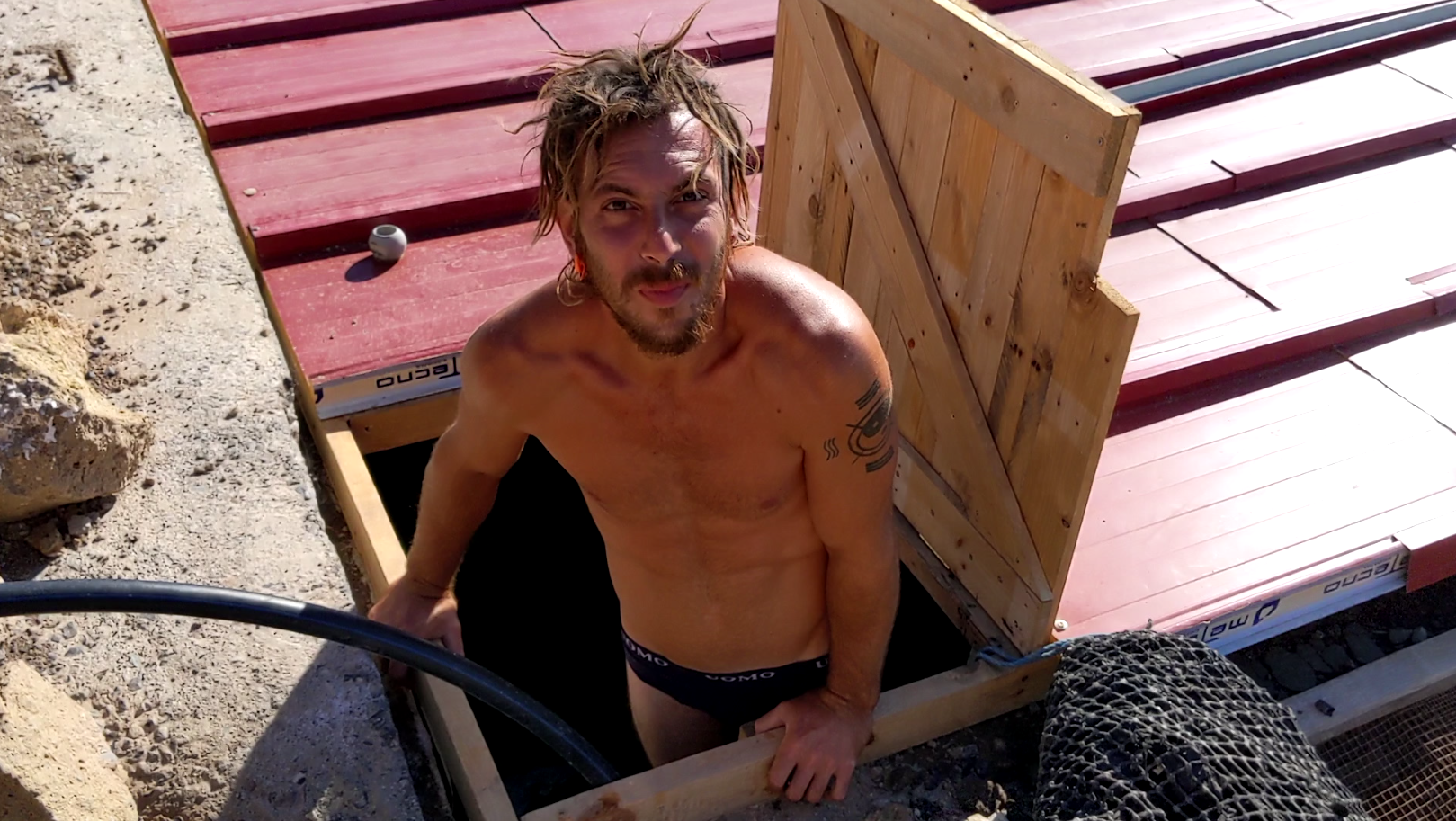 The final part of episode 3 is to leave you with a smile on your face. In true day to day finca style we find unique ways to fix problems. When there is a problem at the bottom of the full water tank, what better way to start the day, with a dip first thing in the morning, strip off and dive under the freezing cold water. Watch Edo wimper at the freezing cold stinky water as he prances around in his underwear questioning his life choices!