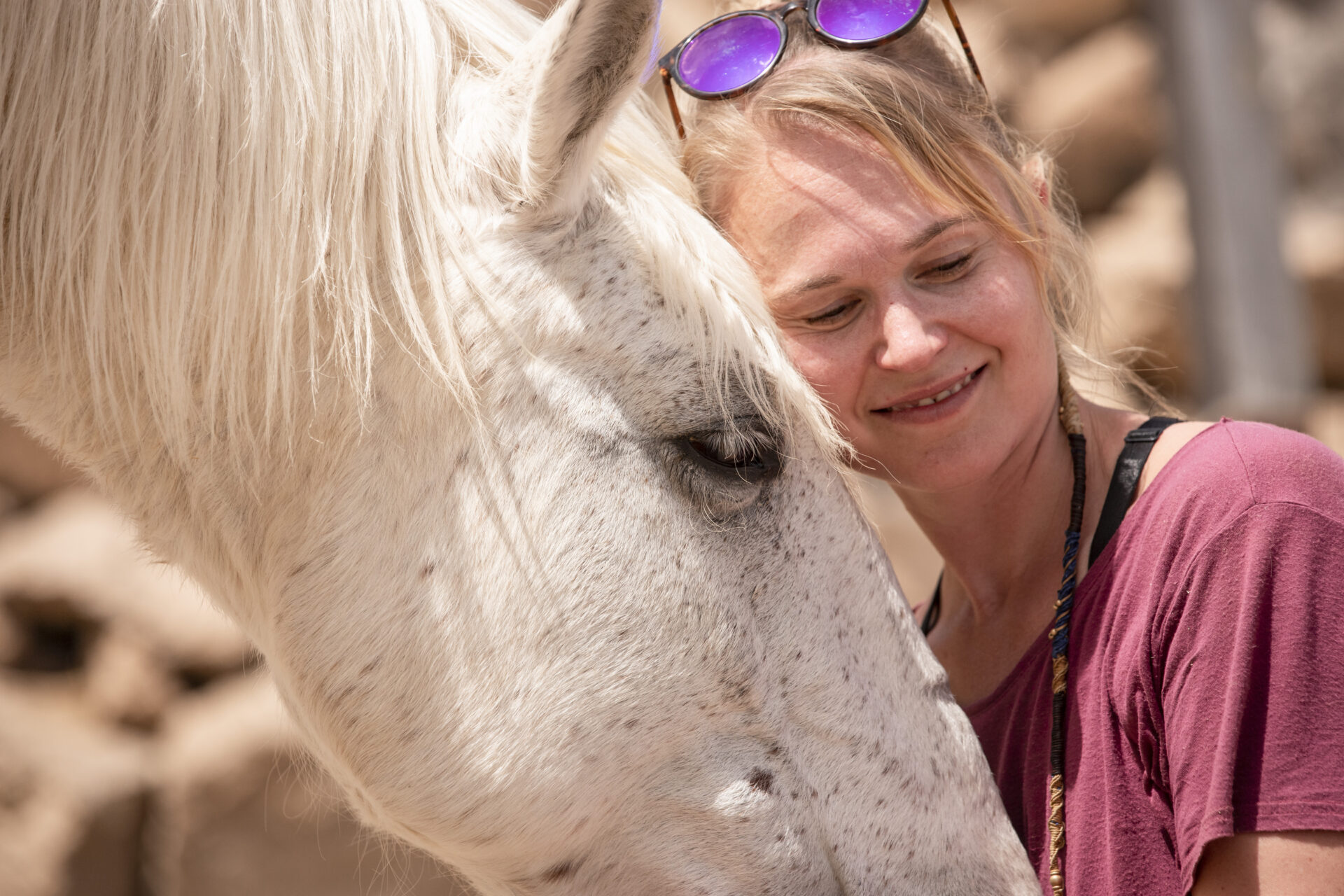 Especially if you work with rescue horses whose voices were shut down in the past it’s more than important to give them their freedom and their right to say no back. It can take a lot of time and healing to get a horse that has had bad experiences with humans to trust you. The basis for a trustful friendship is that the horse knows he can draw a line how far he is ready to interact with you and that you respect this line. Why should the horse respect your boundaries if you don’t respect his? It’s always helpful to reflect on how you handle your horse, even if you’re a professional.