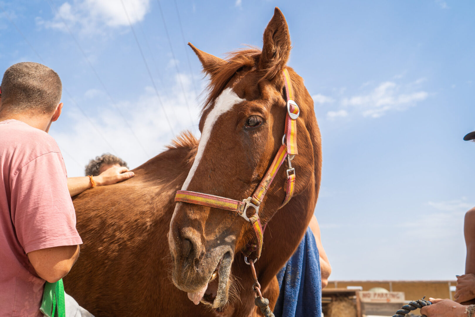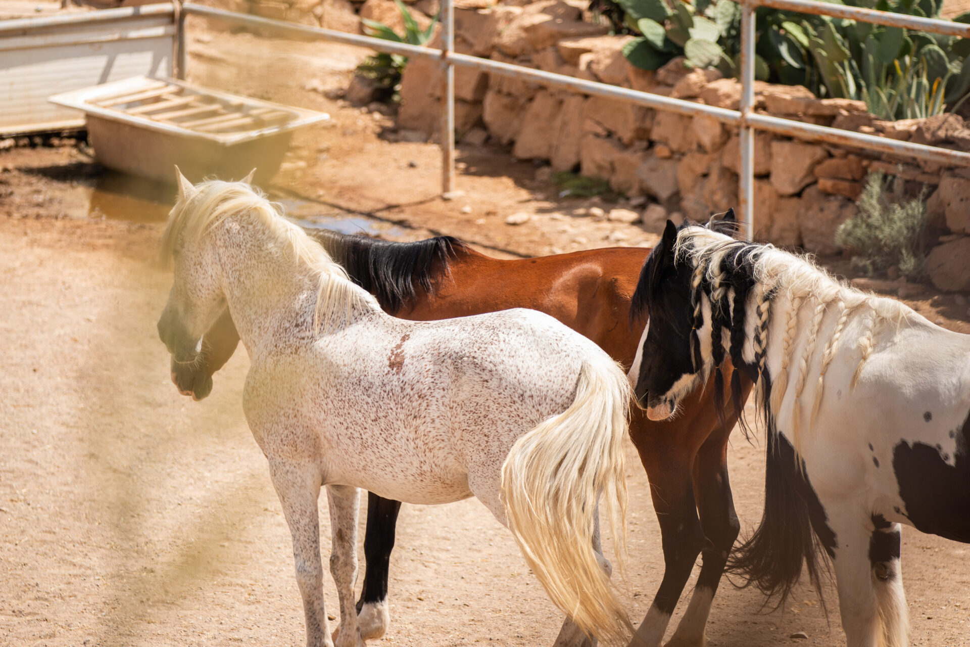 At 11 am we stopped for a half-hour breakfast break and in the afternoon continued with the day’s plan! Very quickly I got used to our horses and their routine and I grew to love “spa day” Mondays and Fridays where each horse has their feet soaked in the bath to help with our dry climate. Also pedicure Wednesdays — throughout the week we check the hooves and we do any trimming or filing that is needed on this day. A lot of our horses are now on self-trimming cycles, meaning that their bare hooves wear down naturally without the use of tools and instead with the correct ground and exercise, just like horses in the wild. This is amazing as we try to create as natural a life as we can for our animals. Though as you can imagine it takes a lot of time, knowledge, care and patience to get from the feet they arrive with to the stage of natural trimming.