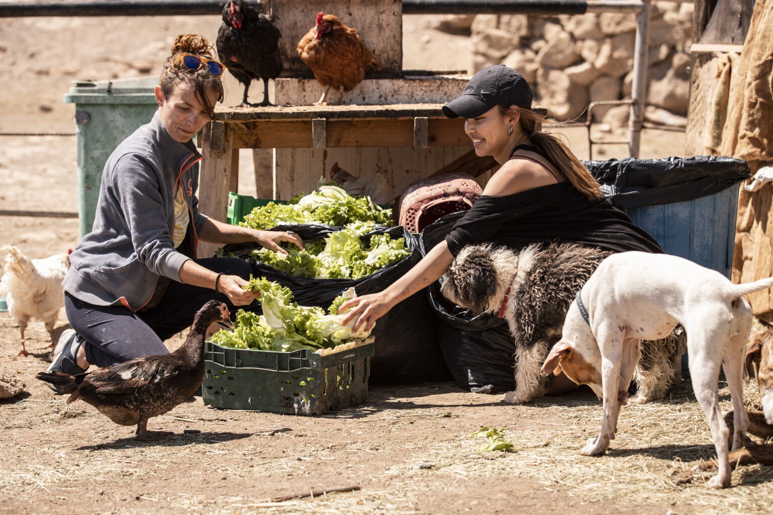 Our community is made up of approximately 30 people and hundreds of animals. And every day, each one of them, gets a totally nutritious and different meal. We have food for all tastes. We bring so much food that we even share with other families in need who do not have the funds for food. Everything that is left over is eaten by our animals. And what they don’t eat is compost for the earth. Nothing is wasted.