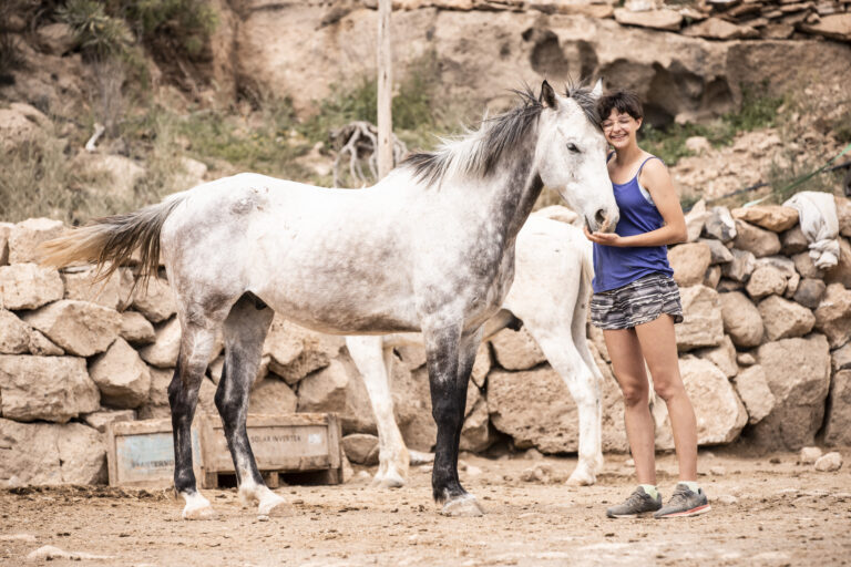 Lea is our “horse girl” and professional photographer at Tenerife Horse Rescue. At just 19 years old, from Germany and she has a great passion for horses and photography. That much, that she decided to quit school and come volunteer with us where you she can practice how to build a connection with your horse.