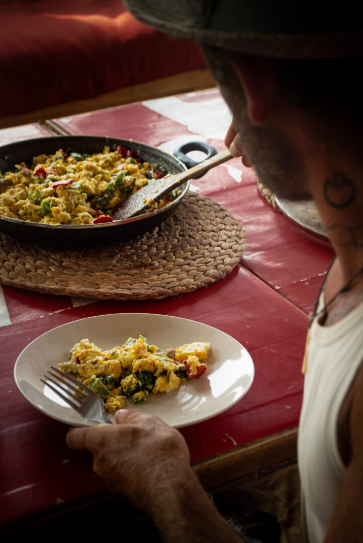 There are limitations of course: Because we rely on solar power, on the rare cloudy days on this island, you can’t use electronic kitchen tools such as the blender. Therefore, you don’t have smoothies on this day. “We’re missing spices, especially pepper, and all kinds of nuts.” says Marine. And Flo ads: “Oil and butter are rare, so sometimes we just use water for frying.”