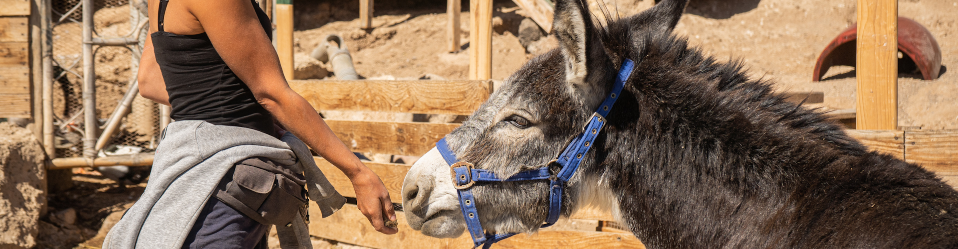 Horse walkers: Come regularly and take a horse or donkey walking. Meet new people, get exercise and bond with your “own” horse. Groom them and experience horse care. Basic horse experience is preferred however this is a great place to learn if you are committed to come for a longer period and will donate for lessons with a volunteer.