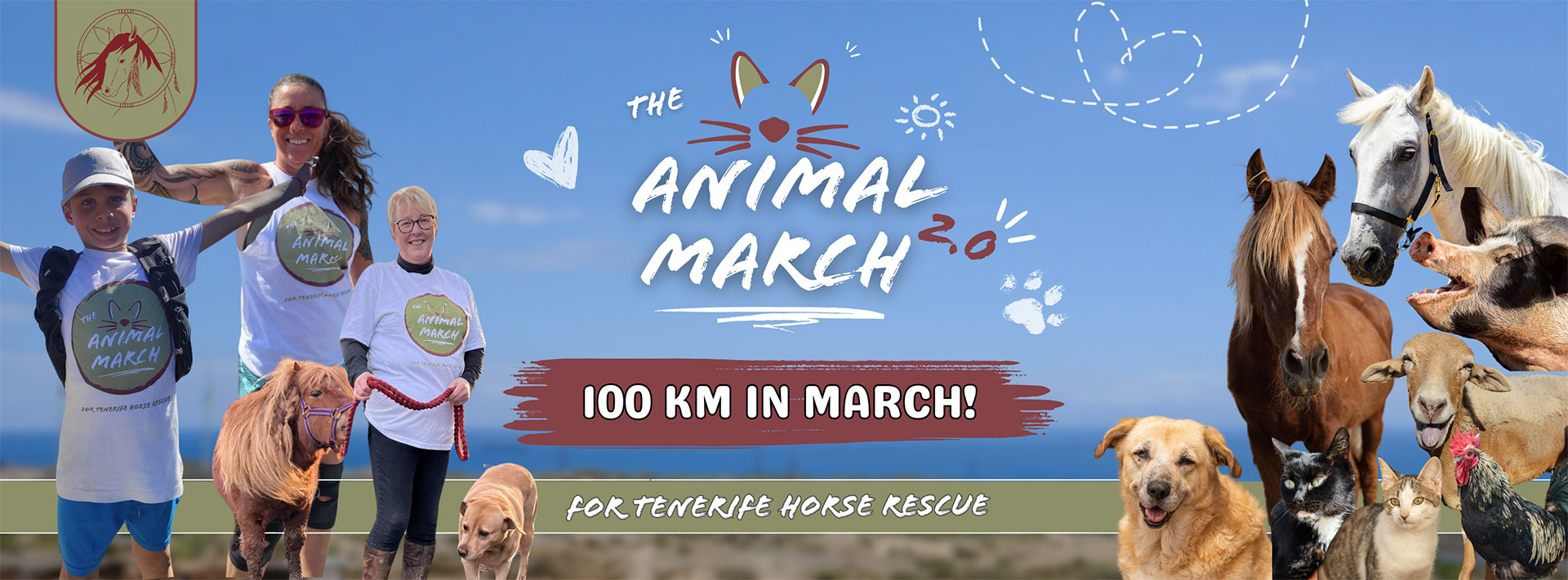 The challenge is to walk, run or jog 100 km over the month of March! You can do this with your favourite four legged friend, with a buddy, a group, or just flying solo! It works out to be just over 3km a day! You can use our activity tracker by going to your Tenerife Horse Rescue fundraiser and going to “activity”, or write them on your distance tracker that we will send, and share your photos/videos to the group! Sign up here! https://socialsync.app/f/el-lvxdz8y6v0z8v/fm-pqpw5lyjp074r