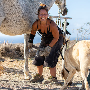 We are so happy to have a qualified barefoot trimmer/ equine podiatrist on the team. As barefoot is such an important part of our horse care this is an area that needs a lot of knowledge, passion and care. In the early years Emma could do them herself but with the growth of the number of horses the feet were starting to rely on local farriers and occasional volunteers to help keep on top. Resulting with a decline in the conditions of their feet until Nuria came along. We have never met anyone with such a natural passion for horses hooves. And with that passion comes so much knowledge. Our horses feet have never looked better and as horses’ health starts with their feet her position is a very very important one.